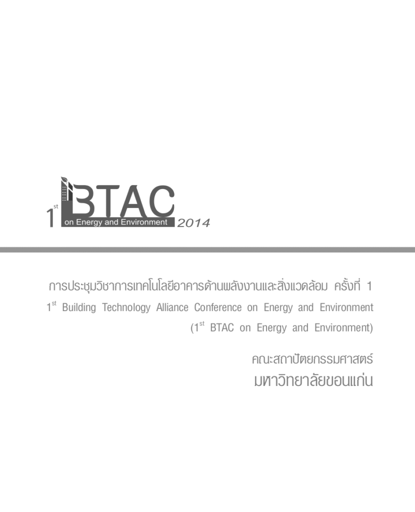 – ปิยาฉัตร ศิริวรรณ - การตรวจประเมินค่าอนุรักษ์พลังงานในอาคารตามเกณฑ์มาตรฐานอาคารด้านพลังงาน (Building Energy Code: BEC) กรณีศึกษาอาคารสำนักงานอธิการบดี มหาวิทยาลัยราชภัฏเชียงราย