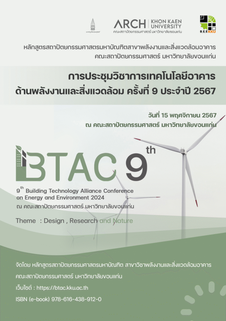 – อนันต์ ภูจอมนัด กิตติพงษ์ ต้นมิตร และ ยศาภิดา ตันมิตร - การประหยัดพลังงานและความเป็นมิตรต่อสิ่งแวดล้อมของอาคารเรียนในพื้นที่เขตการศึกษาและวิจัยมหาวิทยาลัยขอนแก่น