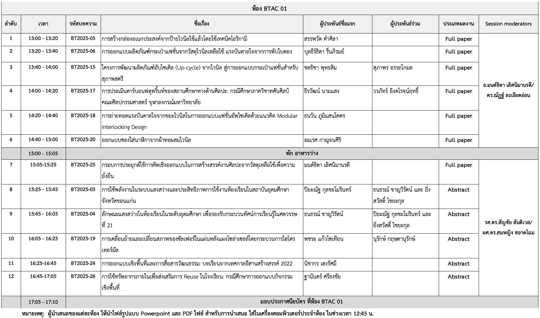 | 10:45 – 11:00 น. | พักรับประทานอาหารว่าง | |||||