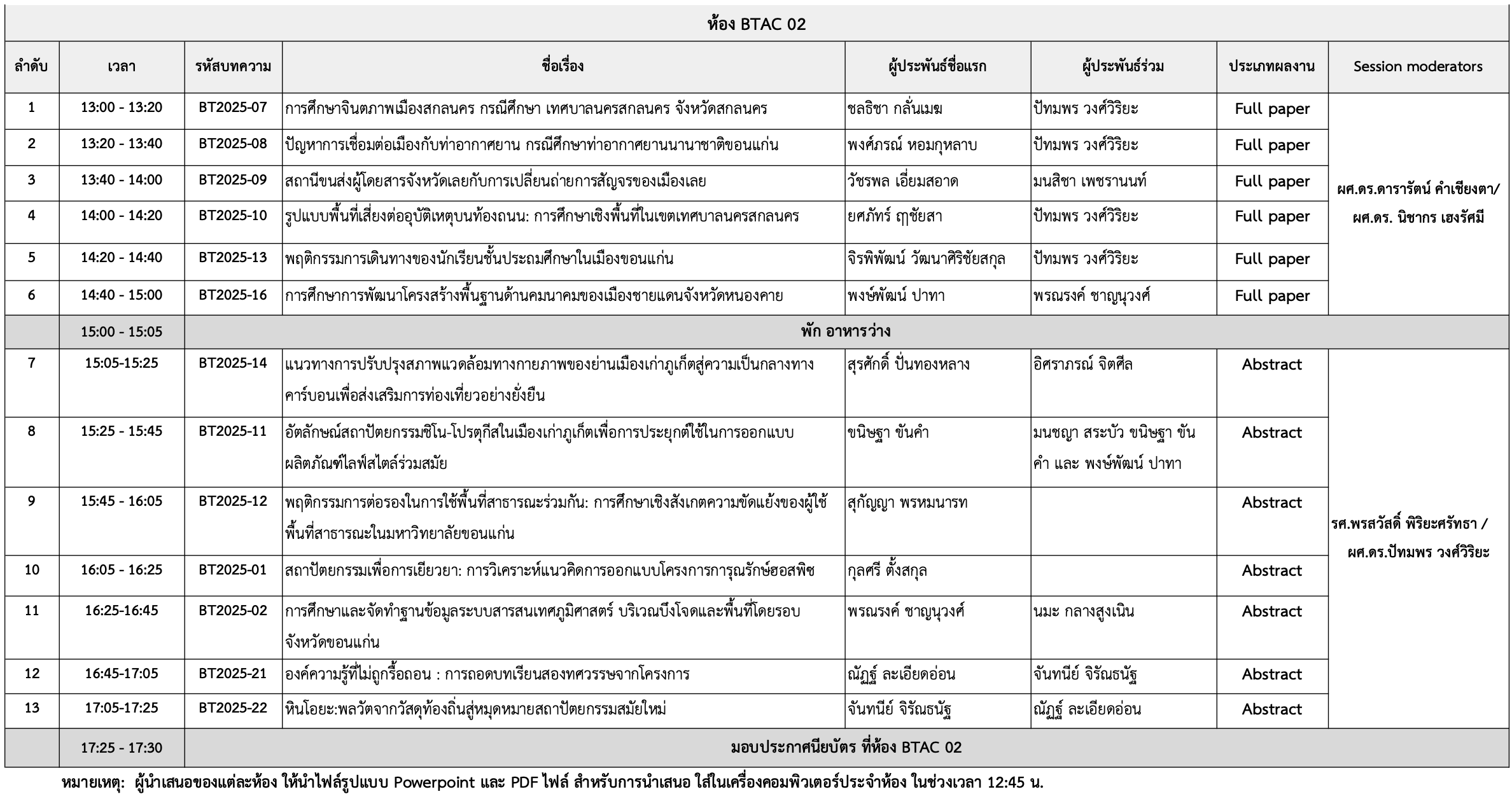 | 11:45 – 13:00 น. | พักรับประทานอาหารเที่ยง | |||||